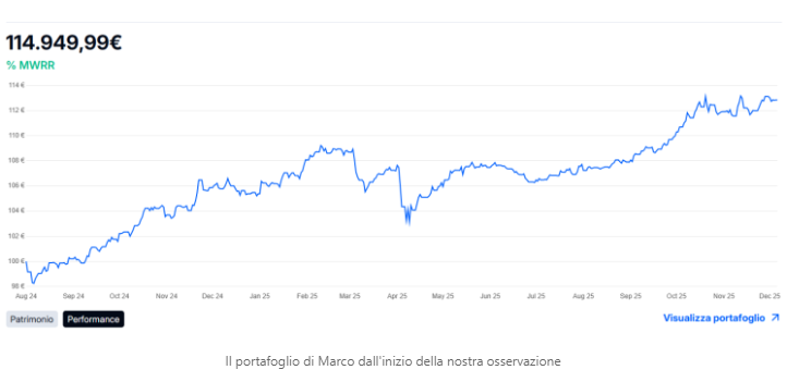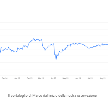 Il portafoglio che vedete riflette esattamente questa evoluzione: non è un portafoglio prudente “per paura”, ma un portafoglio progettato per rispettare le sue priorità di oggi. Stabilità prima di tutto. Volatilità ridotta. Una crescita ordinata, consapevole, allineata a ciò che per lui conta davvero.